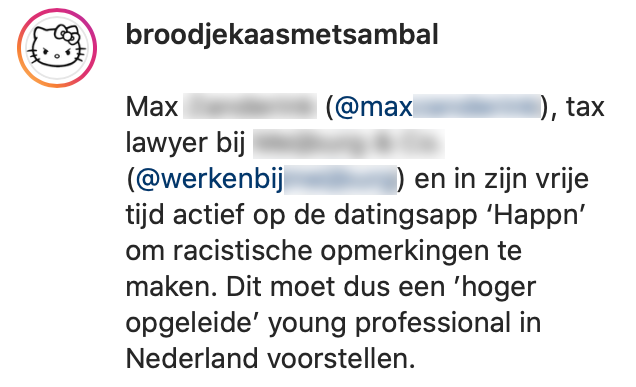 advocaat instagram racisme ranzig
