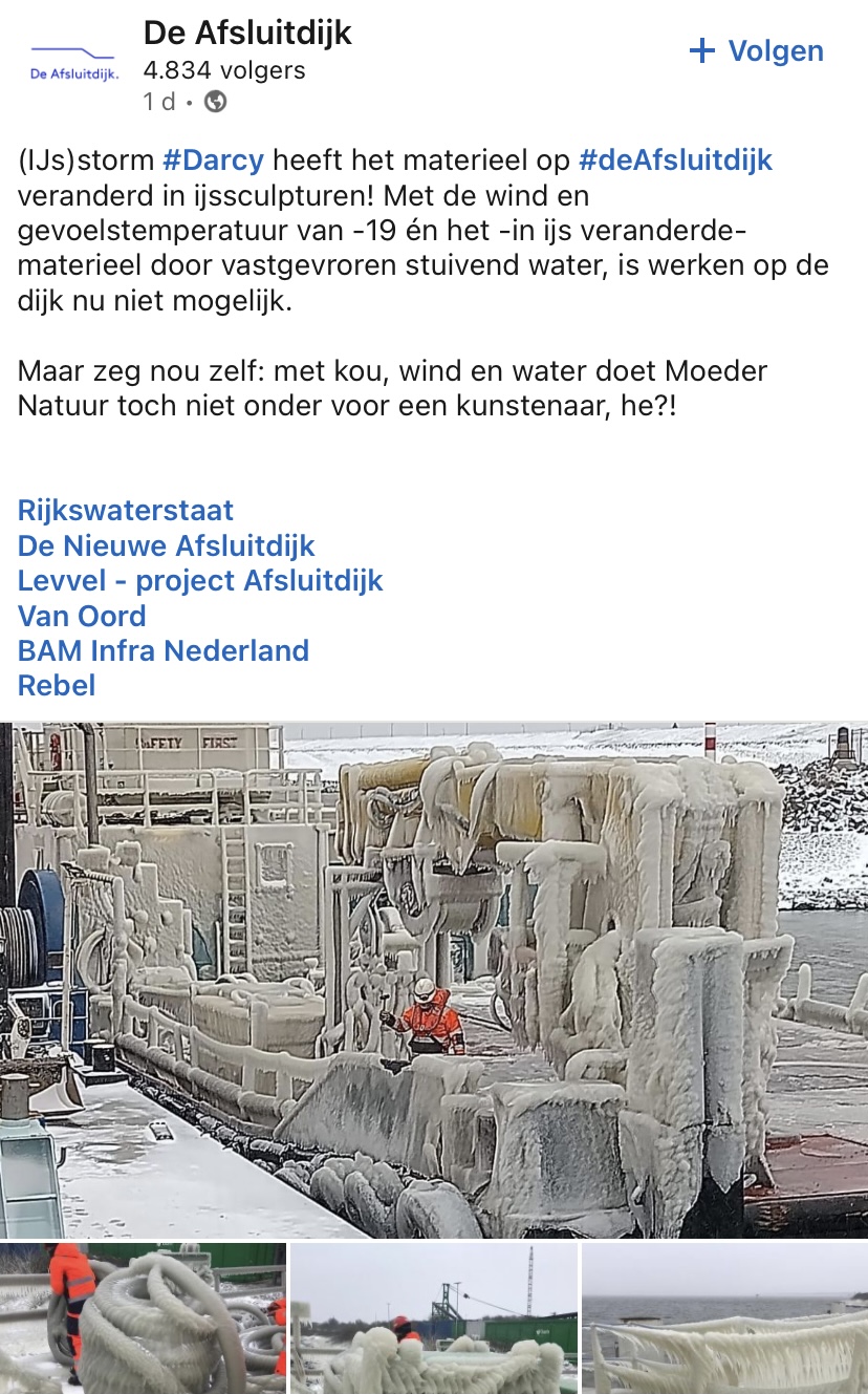 Er zijn al talloze mooie winterse plaatjes vooorbijgekomen op social media, maar wat de LinkedIn pagina van De Afsluitdijk deelt op LinkedIn is wel heel apart. In een post op LinkedIn delen ze foto’s van de Afsluitdijk, die totaal is omgetoverd tot een ijsparadijs. En dat allemaal door de natuur.