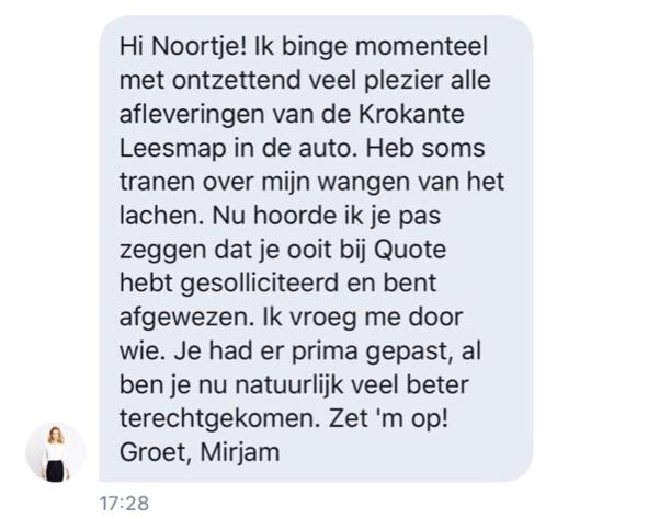 2. Maar recent kreeg ze plotseling onderstaand berichtje van iemand die bij Quote werkt.