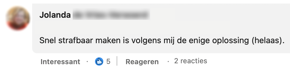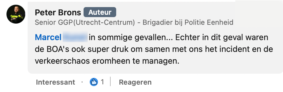 7. Agent Peter legt uit dat het in sommige gevallen al strafbaar is, maar dat het helaas niet altijd mogelijk is om uit te voeren op zo’n moment.