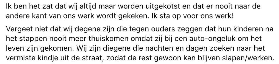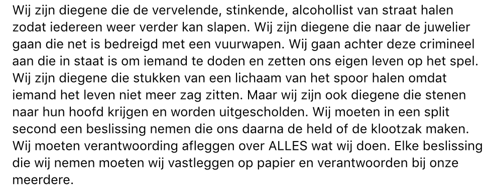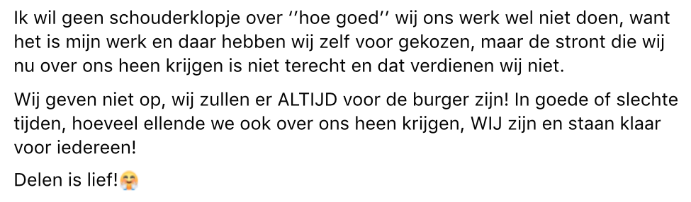 6. Ze sluit haar bericht af met de boodschap dat de politie er altijd voor burgers zal zijn.