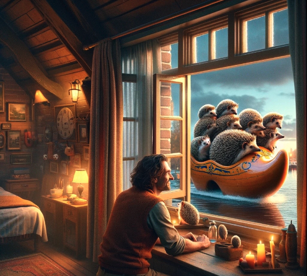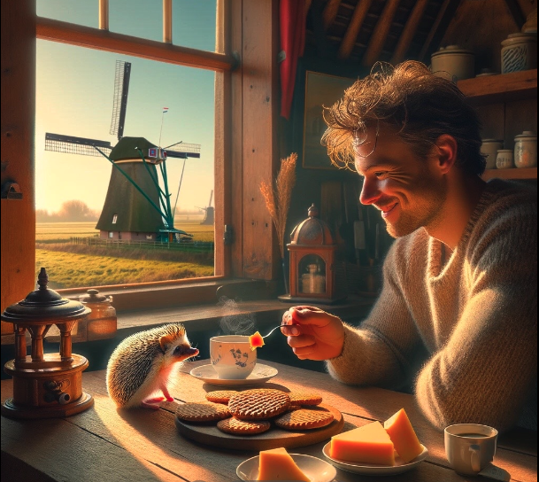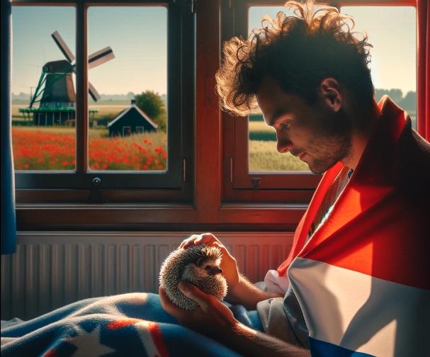1. Net zoals alle Nederlanders begint AI z’n dag natuurlijk onder de nationale vlag en aait-ie een egel. Uh, wacht… egel?