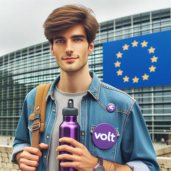 13. De Volt-stemmers gaan allemaal Europa in, mét paarse drinkfles.