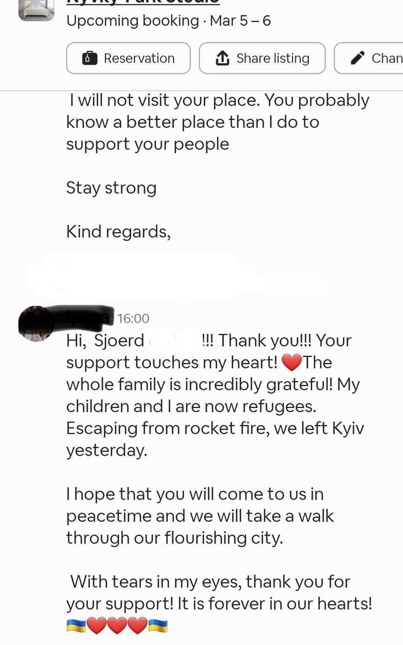 2. Door een Airbnb te boeken in Oekraïne en niet op te komen dagen, kan je direct in contact komen met de mensen daar en geld overmaken. Dit geld doneer je doormiddel van het boeken van een kamer.