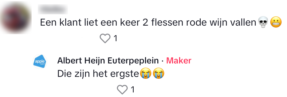 Een ongeluk zit in een klein hoekje, Vooral als dat hoekje zich dicht bij het wijnschap in de Albert Heijn bevindt. Medewerkers laten in deze video zien hoe zij het liefst zouden willen reageren als een klant weer eens iets uit z’n klauwen laat donderen. In de comments delen andere supermarktmedewerkers wat het ergste is dat zij ooit hebben moeten opruimen en dat is niet mals.