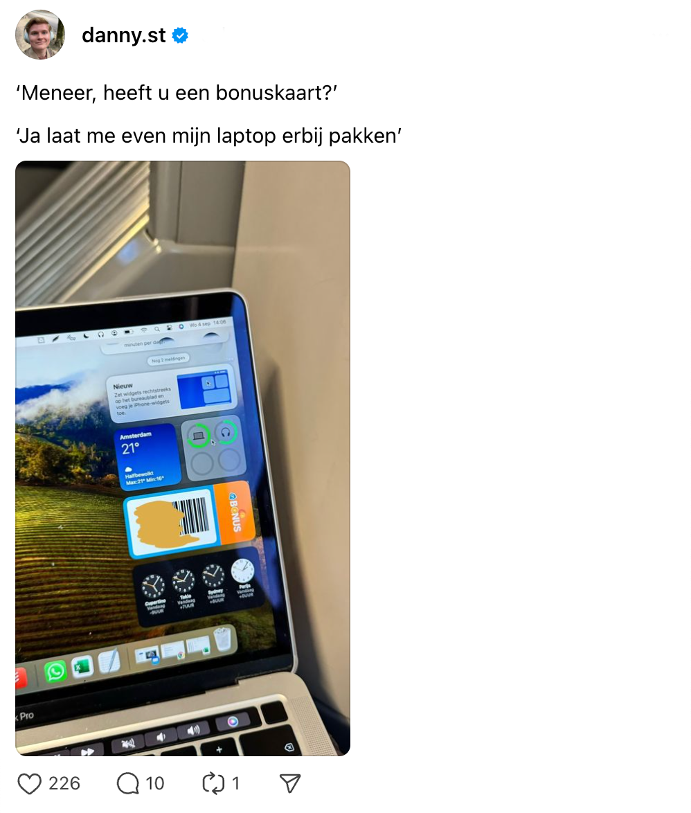 1. De manier waarop Danny zijn bonuskaart bewaart is helemaal (lap)top.