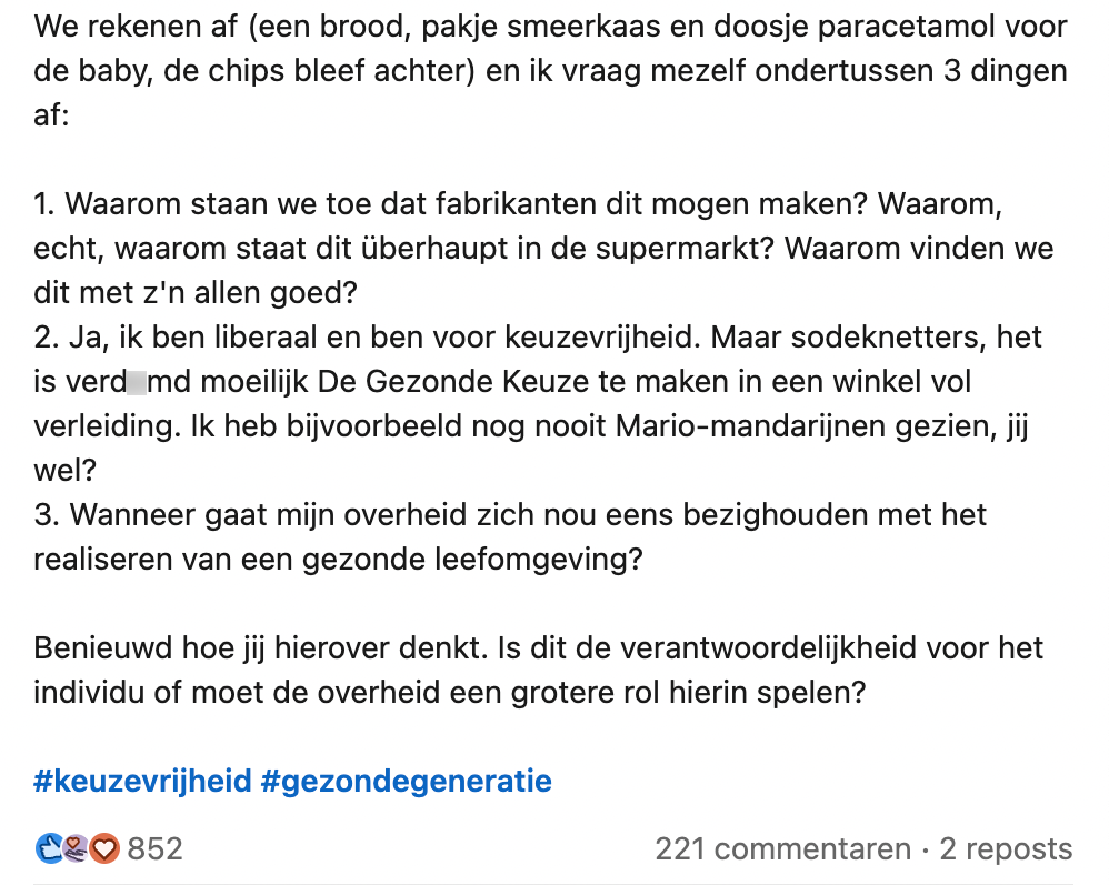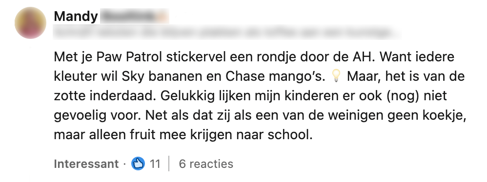 Boodschappen doen met kleine kinderen is een hele uitdaging. Je moet ze constant in de gaten houden, zorgen dat ze niet het hele wijnschap op de grond laten mieteren en niet toegeven aan al het gezeur over dat ene toetje. Hoewel sommige ouders hier wel tegen bestand zijn, maken een aantal verpakkingen het voor iedere ouder knap lastig om standvastig te zijn. Wanneer Valérie met haar kind langs het chipsschap in de Albert Heijn loopt, ziet zij een verpakking die volgens haar echt álles slaat.