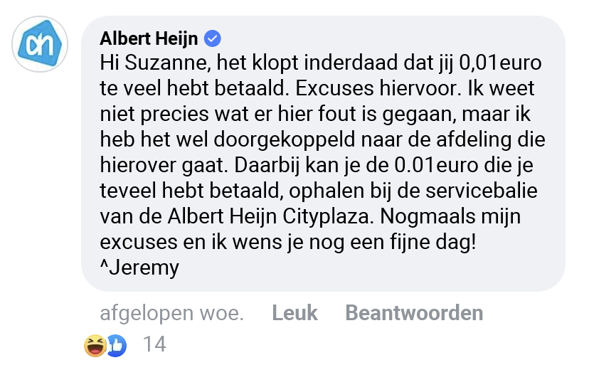Reactie van Albert Heijn op tweet Pieter Derks valt niet in goede aarde