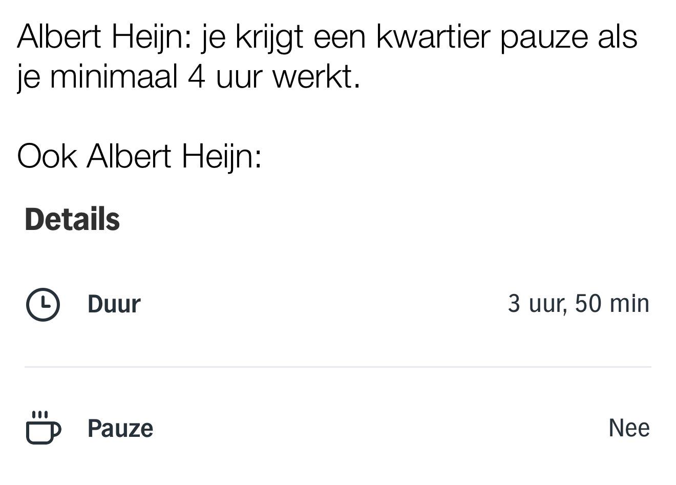 6. Gelukkig krijg je bij Albert Heijn op een langere dienst wel pauze.