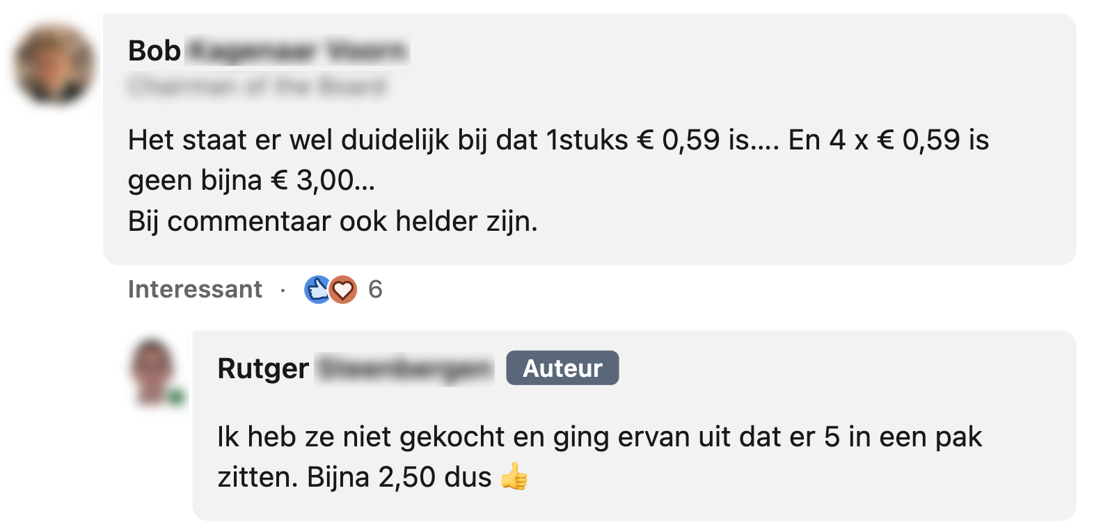 1. Rutger is niet bepaald te spreken over dit opvallende (of juist onopvallende) prijskaartje bij Albert Heijn.