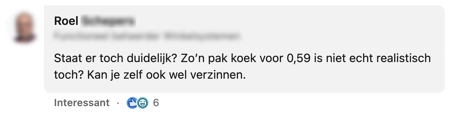 8. Volgens Roel is het superlogisch dat een pak koeken niet zo goedkoop is.