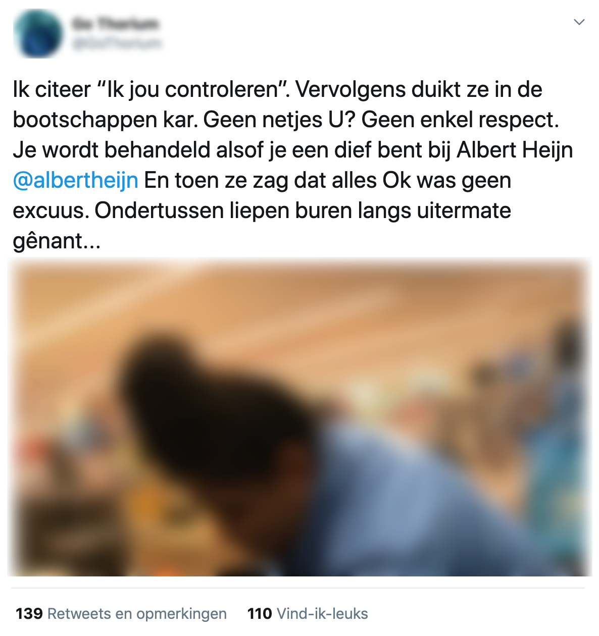 Veel mensen scannen tegenwoordig hun eigen boodschappen in de supermarkt. Het is daarbij ook de normaalste zaak van de wereld dat je gecontroleerd kan worden. Een twitteraar die zijn boodschappen deed bij de Albert Heijn was het daar niet mee eens. Hij vond dat hij onbeschoft behandeld werd. Dit deelde hij op twitter, inclusief een foto van de medewerkster. Veel twitteraars reageerden, en ook Albert Heijn liet van zich horen.