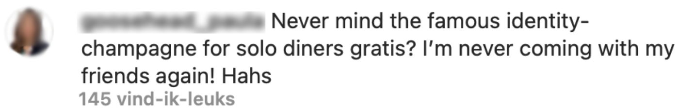 1. Het restaurant deelt regelmatig foto’s van bezoekers die alleen komen eten op Instagram. Werken met een gratis glas champagne erbij is zo gek nog niet.