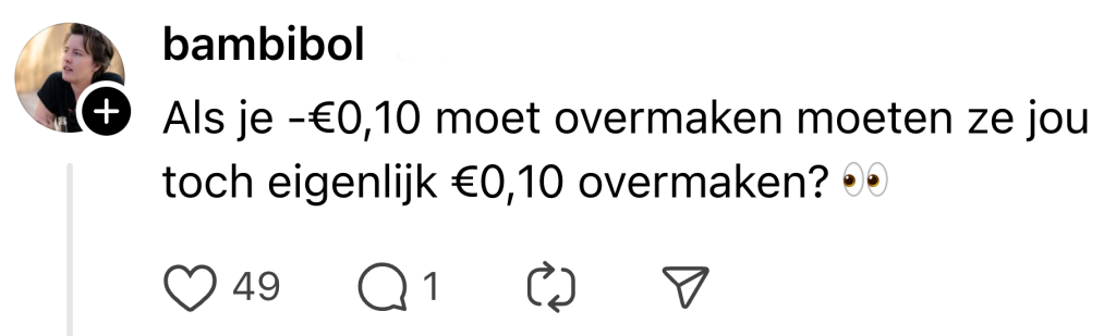 Nederlanders zijn gek op betaalverzoeken en sturen dan ook voor iedere poep of scheet een Tikkie. Het gaat Karin natuurlijk niet gebeuren dat zíj́ die tien cent voor dat slokje cola moet betalen in plaats van Jannie zelf. En als je gezellig bij iemand gaat eten, reken dan maar dat je nog voor je thuis bent een WhatsApp-melding op je telefoon hebt staan. Ook Nederlandse bedrijven doen heerlijk mee aan deze ’trend’. Alyssa krijgt namelijk een nogal apart verzoekje van ov-chipkaart en is het spoor helemaal bijster.