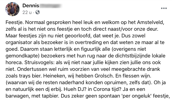 2. Even later deelde hij een Facebook-post van Dennis, die met zijn dichtstbijzijnde café last heeft van de gevolgen van het ‘feestje’.