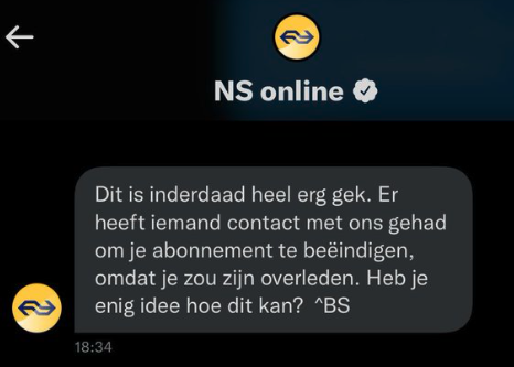 1. Dit is het bericht dat Anneke krijgt van de NS.