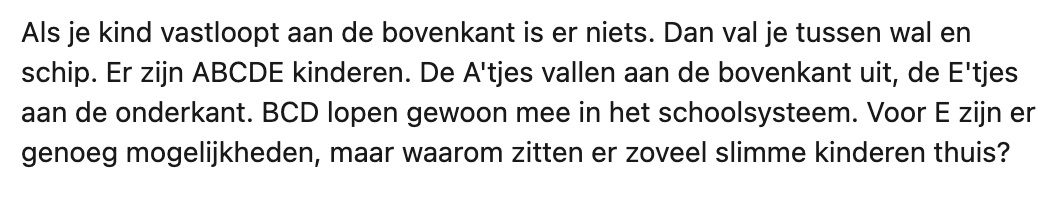 3. Annemiek vraagt zich af waarom er in het schoolsysteem zo weinig aandacht wordt besteed aan het welzijn van kinderen.