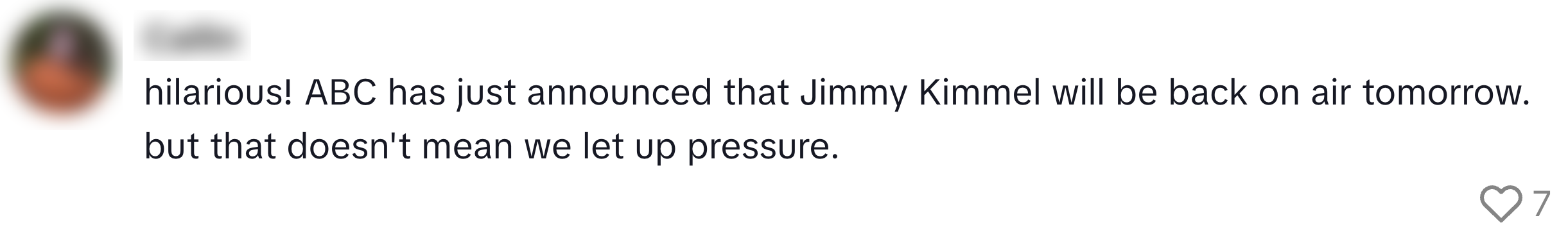 8. Inmiddels heeft Disney bekendgemaakt dat Jimmy Kimmel vanaf vandaag weer terug op de Amerikaanse buis te zien is.