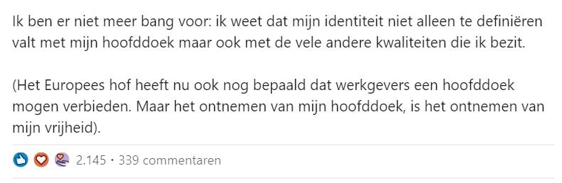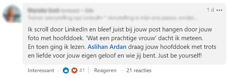 1. Het begint allemaal met dit bericht van Aslihan, waarin ze vertelt over haar keuze om een hoofddoek te dragen.