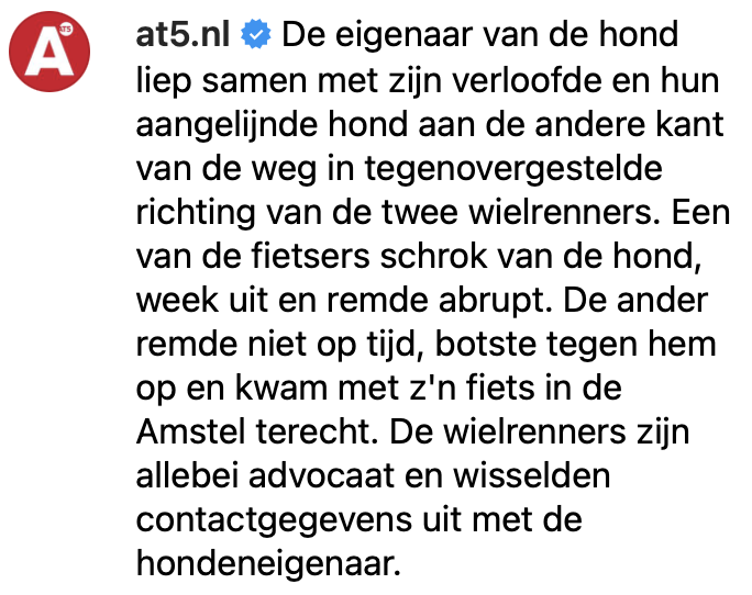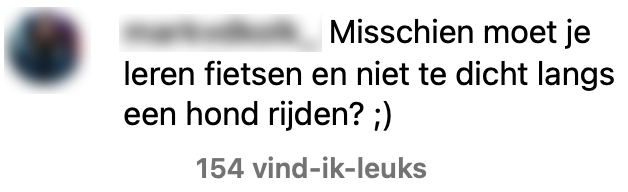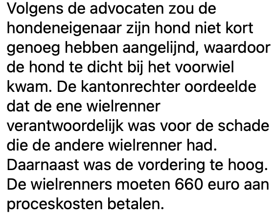 6. De wielrenners hebben geluk dat honden geen aangifte kunnen doen.