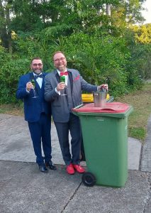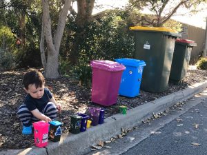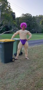 Australiërs in isolatie maken een speciaal moment van het vuilnis buiten zetten