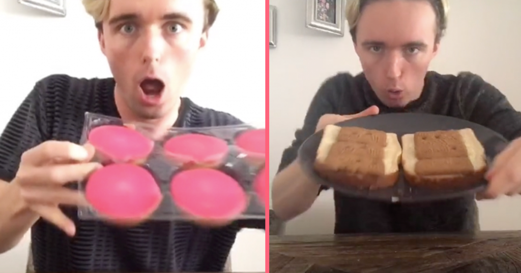 4. En hij laat zijn volgers even zien hoe je een tompouce eet.