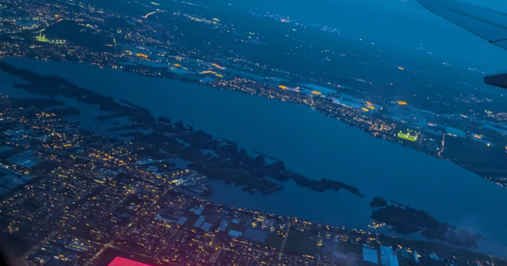 Passagier stijgt met vliegtuig vanaf Schiphol op en ...