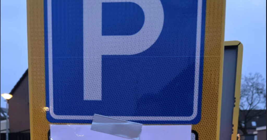 Bewoner hangt absurd briefje op parkeerbord dat bij ...