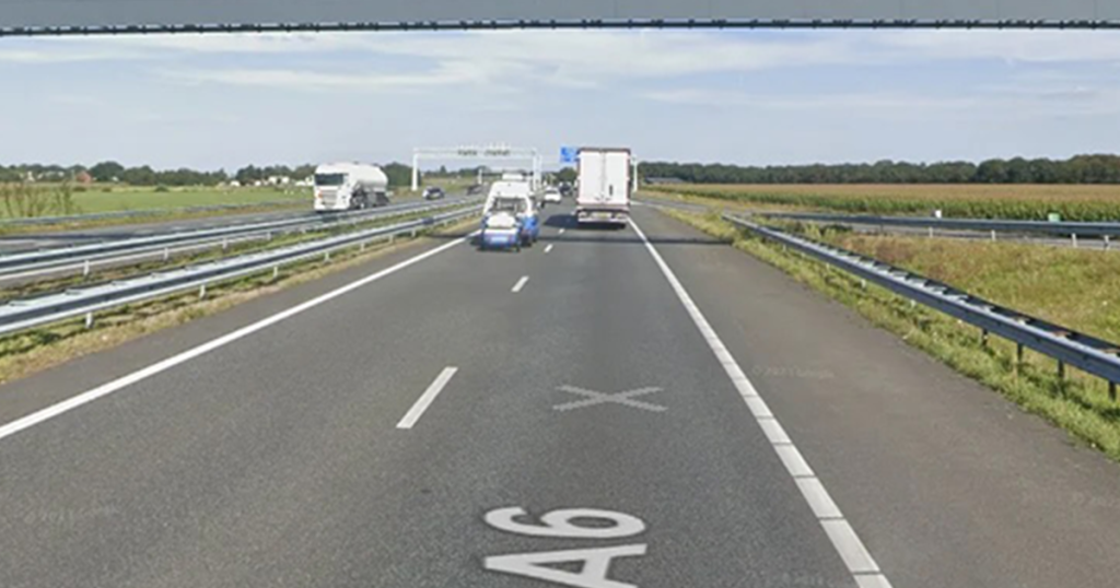 Dít opvallende bord boven de snelweg roept een hoop ...