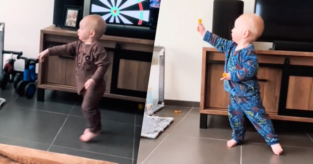 1-jarige met heel bijzonder talent houdt het interne...