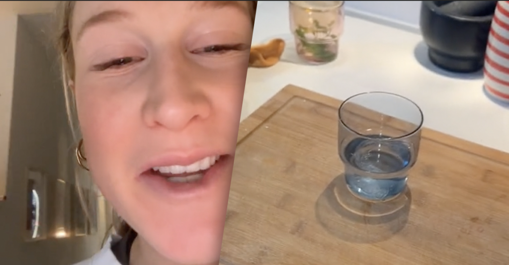 Janneke drinkt nietsvermoedend uit glas water, maar ...