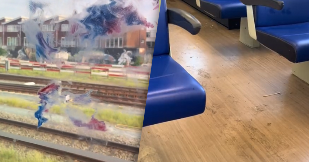 Reiziger geeft kijkje in vieze trein en mensen zijn ...