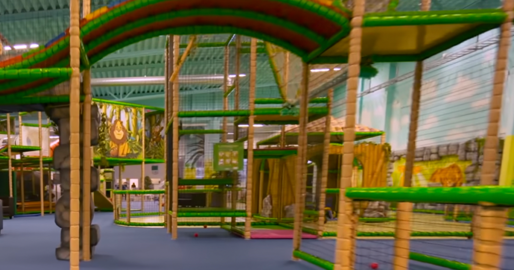 Moeder zoekt kinderen in speelparadijs en neemt heft...