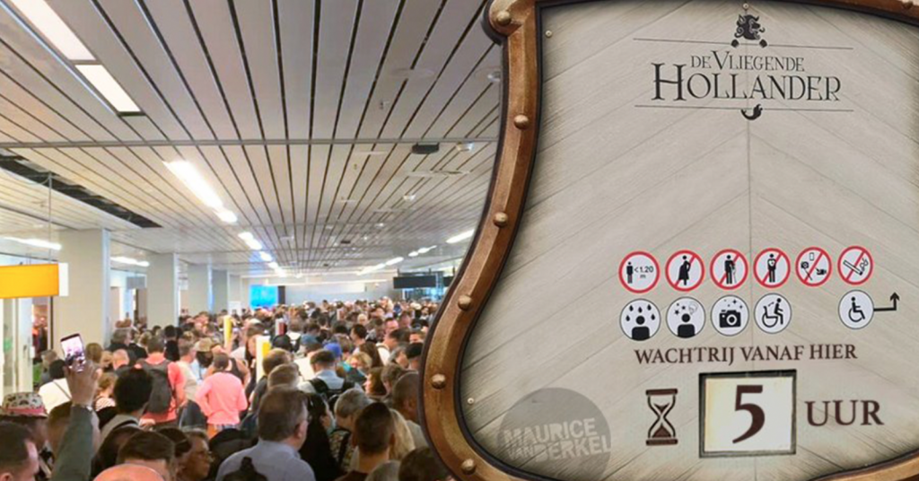 9 tweets over enorme rijen op Schiphol die boven zic...