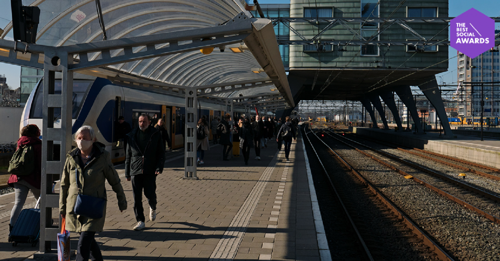 Treinreiziger kijkt op NS-bord en checkt mentaa...