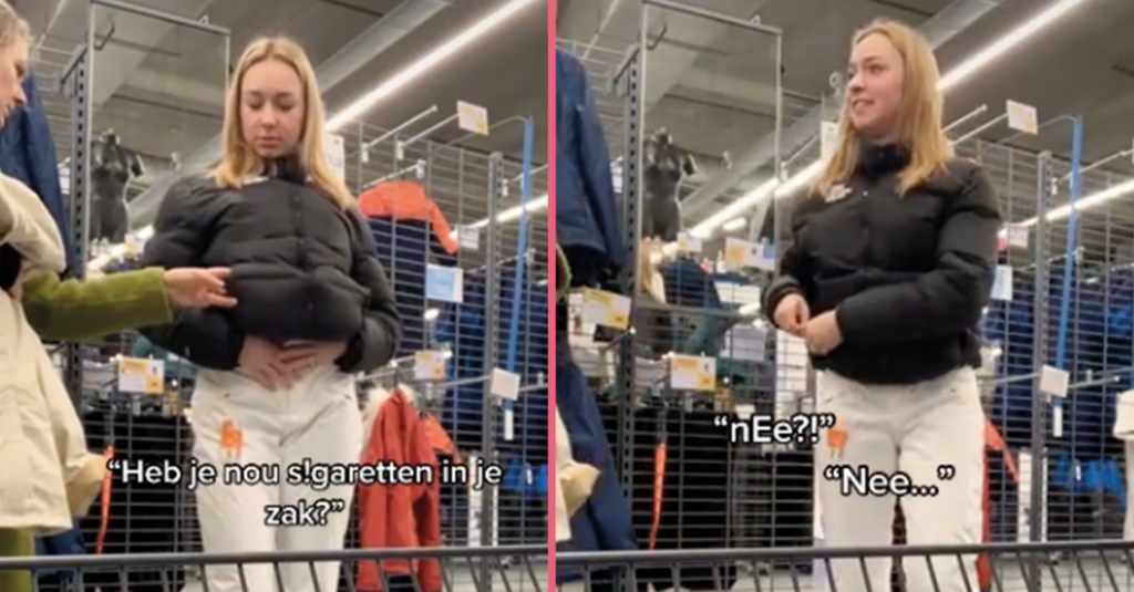 Moeder ziet wat in de jaszak van dochter en haar rea...