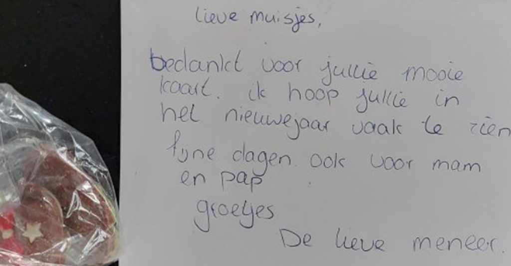 Vijfjarige Mila verrast oude meneer met kaartje en k...
