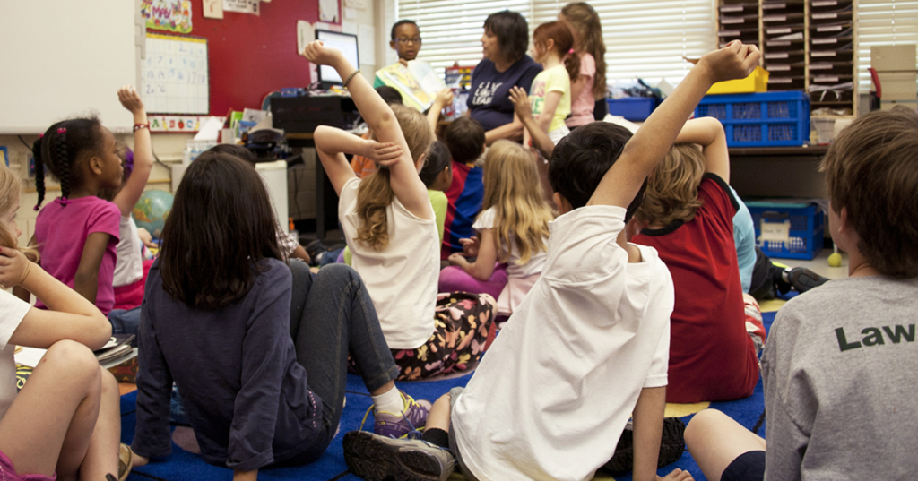 Juf belt met leerling en helpt met aandoenlijke vraa...