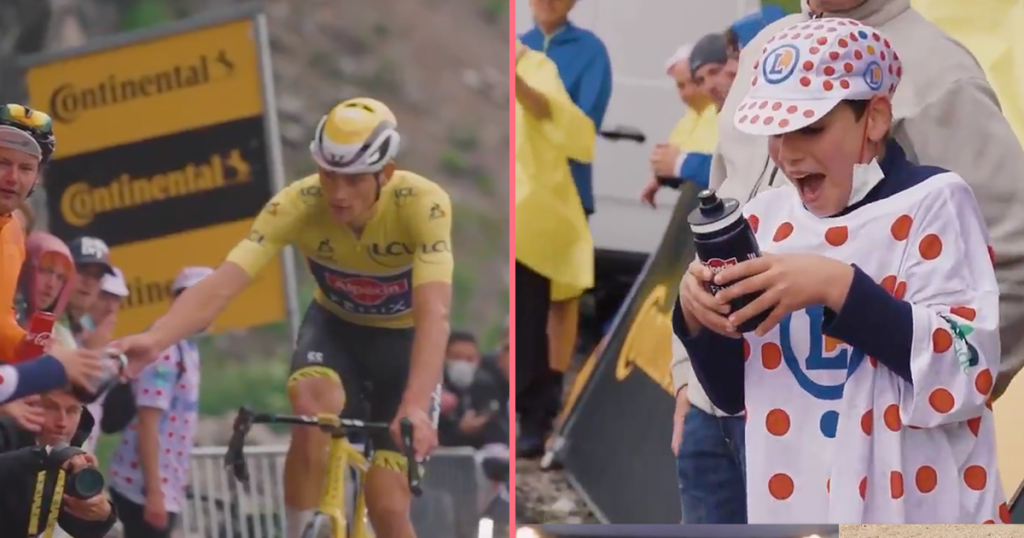 Wielrenner van der Poel geeft bidon aan jonge fan en...