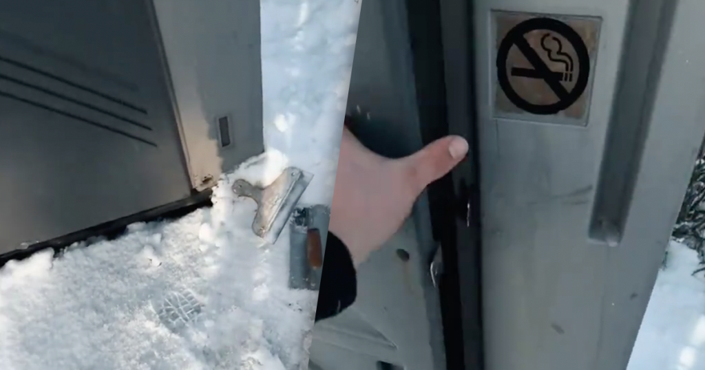 Man trekt dixi op bouwplaats open en schrikt zich ro...