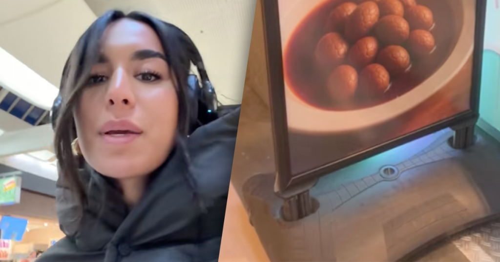 Vrouw ziet bord met nieuwe bizarre smaak paaseitjes ...