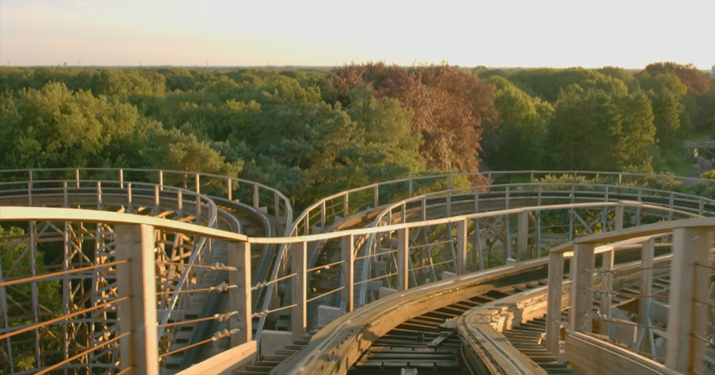 Bovenaanzicht Efteling-achtbaan Joris en de Draak la...