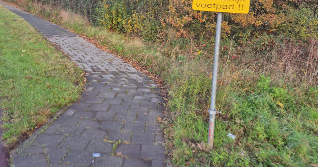 Wandelaar wil op stoep lopen maar ziet bord met R...