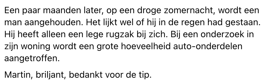 7. En ja hoor: binnen no time is de identiteit van de auto-inbreker boven water.
