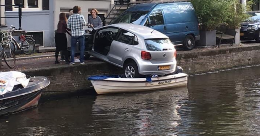 6. Mazzel voor de automobilist, of pech voor de eigenaar van de boot?