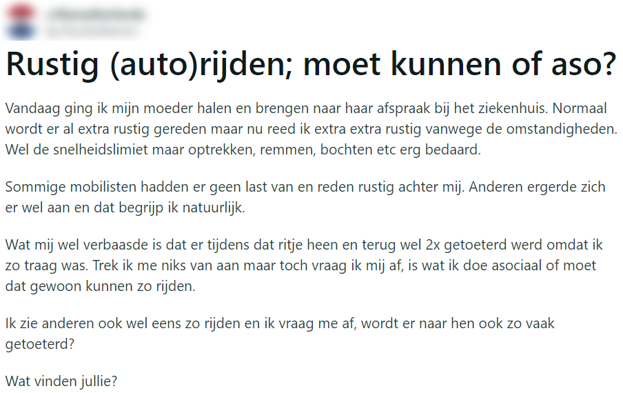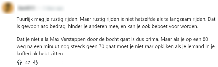 6. Rustig rijden mag van deze reddit-gebruiker, maar té rustig zeker niet.