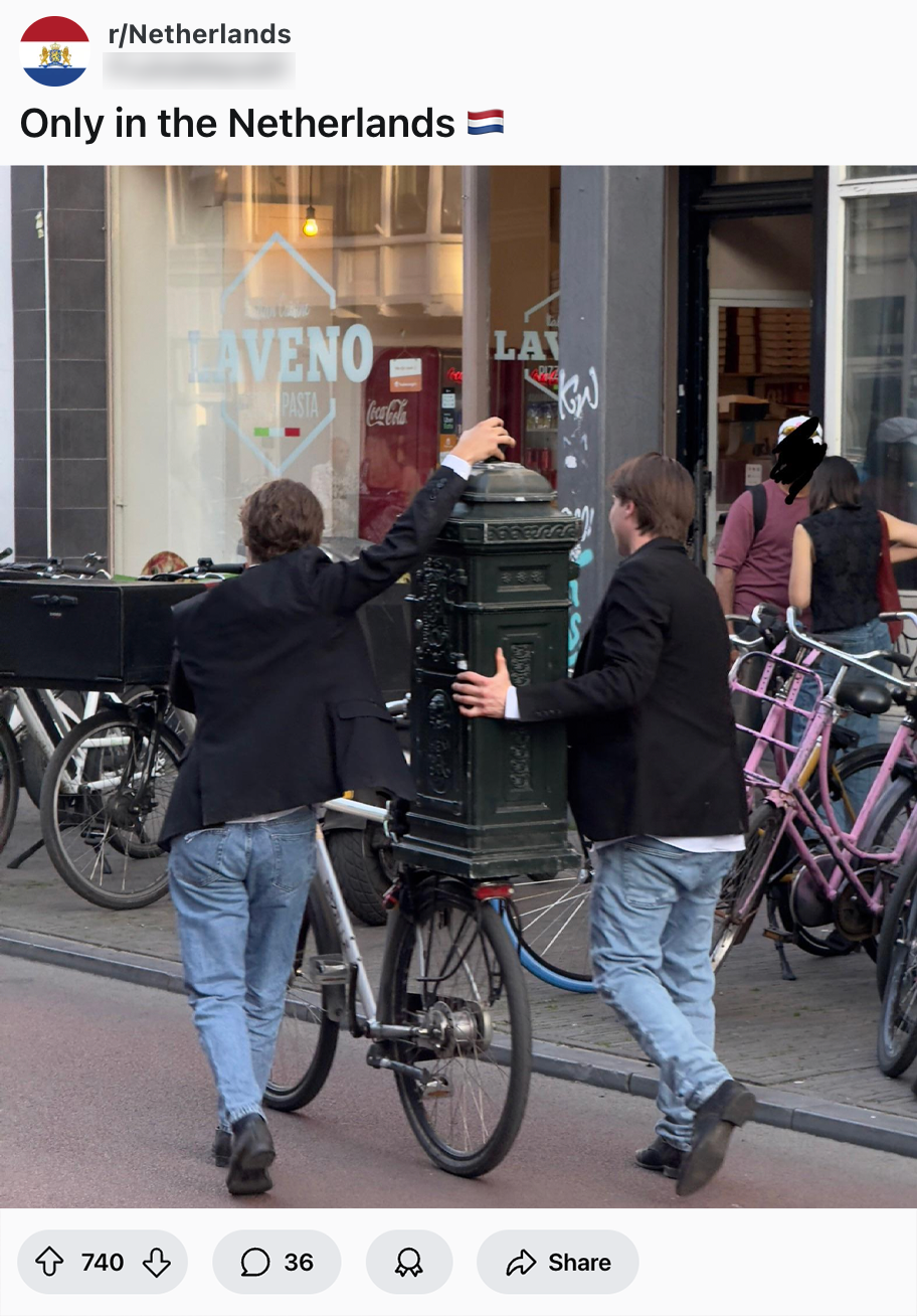 We kennen allemaal Holland’s Got Talent: een talentenjacht waarin vier juryleden op zoek gaan naar het talent dat Nederland te bieden heeft. Maar stel je eens voor dat World’s Got Talent zou bestaan. Hetzelfde format, maar dan zendt elk land ter wereld één act in. Welk talent zou jij naar voren schuiven namens Nederland? Wij hebben wel een idee. Een Reddit-gebruiker spotte namelijk twee fietsers die een wel érg bijzonder object op een bagagedrager weten te balanceren. En heel eerlijk: daarvoor zou de jury zó op die Golden Buzzer kunnen rammen.