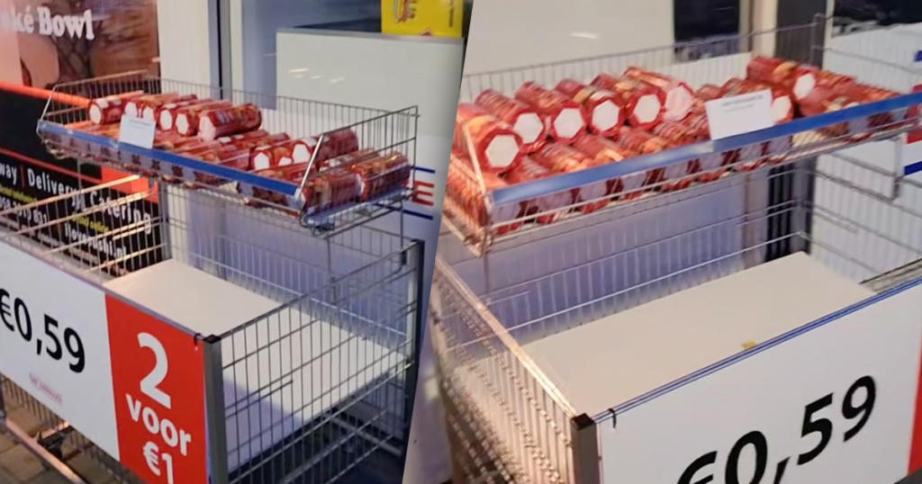 Een klein foutje kan soms opmerkelijke gevolgen hebben. Deze winkel in Leeuwarden had de schappen weer netjes gevuld, de lichten uitgedaan en de deuren al gesloten, maar was één dingetje vergeten: een schap dat nog buiten stond. En ja dat soort dingen blijven natuurlijk niet lang onopgemerkt. Voorbijgangers grepen hun kans, en in no-time was de bak geplunderd. Grote kans dat half Leeuwarden de volgende ochtend precies hetzelfde ontbijtje had.