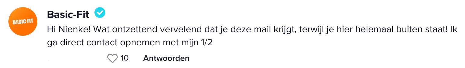 4. Uiteindelijk reageert Basic-Fit zelf ook onder de video en beloven ze er iets aan te gaan doen.