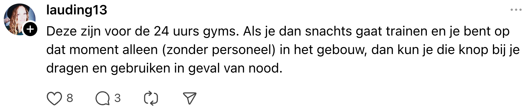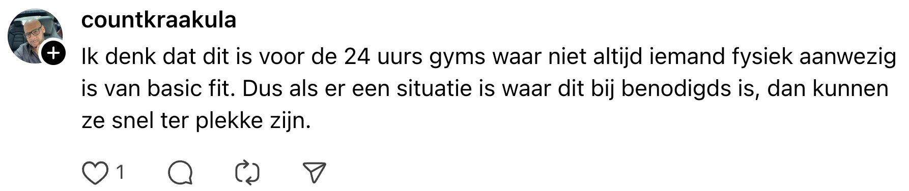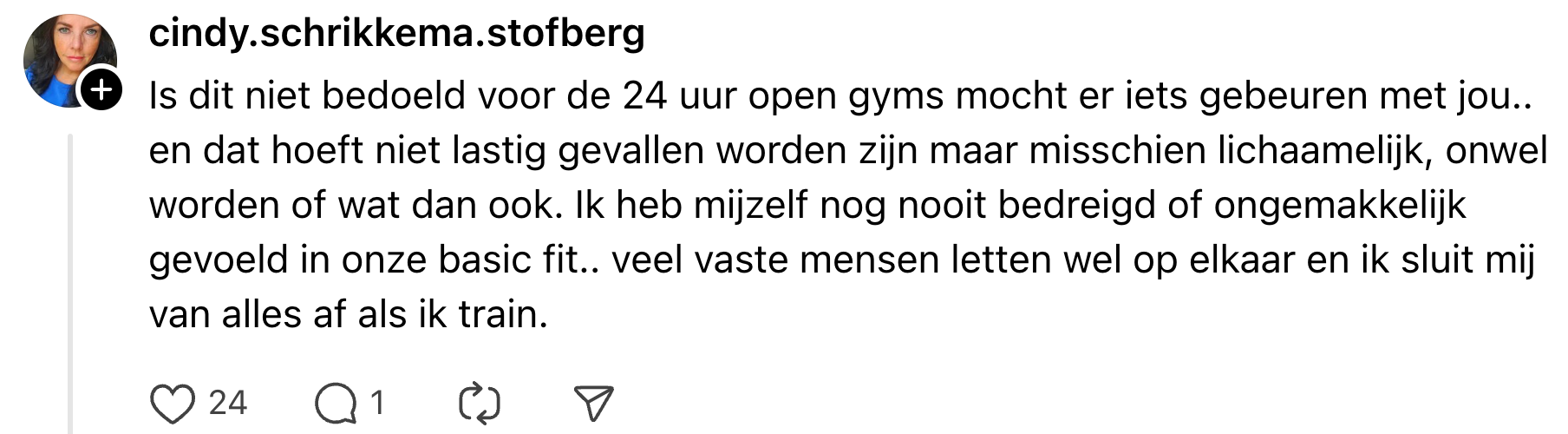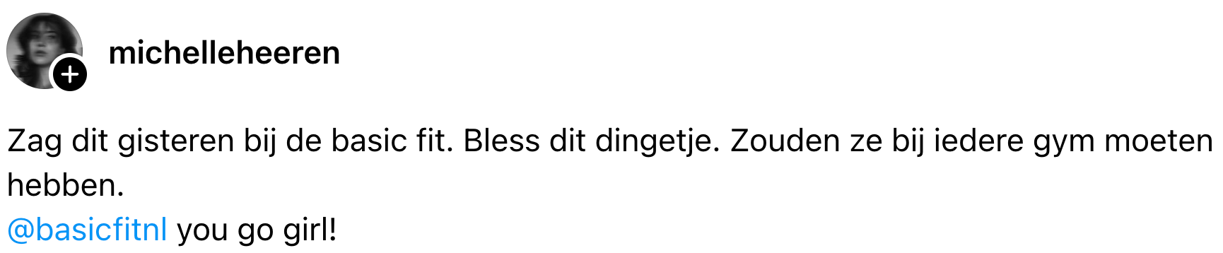 1. Michelle deelt haar waardering voor deze maatregel van Basic-Fit op Threads.